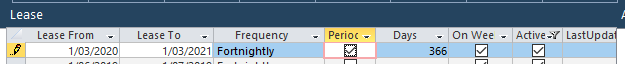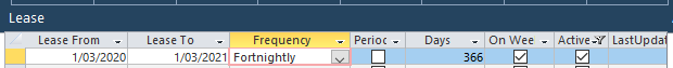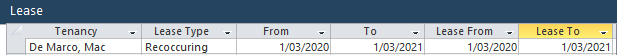 Enter the lease start date in the From field, and the lease end date in the To field (These date fields tell the Days field how many days the lease is for, in a field covered later). Replicate the same dates in the Lease From and Lease To date fields (EG Lease From 1/3/20 - Lease To 1/3/21):