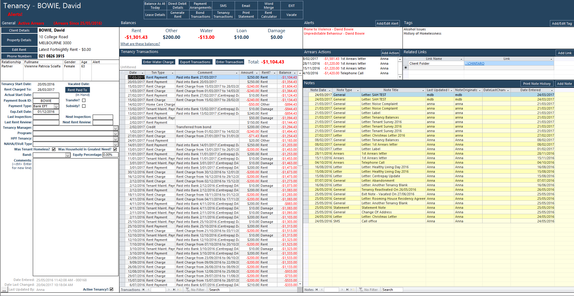 Below is an example of what the Tenancy screen will look like for a User Role with access to the notes section: