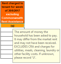 | q.) Rent charged to tenant for the week of 30/06/YEAR excluding Commonwealth Rent Assistance | Yes - Tenancy screen. The Rent Charged field is calculated from the Tenancy screen > Rent Record ('Edit Rent' button) on each Tenancy for the week of 30/06/YEAR. | ||