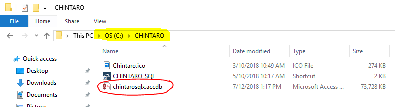 The file you just downloaded is a zip file containing several files. The chintaroSQLx.accdb file is the code database and the ".sql" files are Microsoft SQL Server scripts that must be run before you launch Chintaro. The ChintaroSQLx client (chintaroSQLx.accdb) will usually be installed on the local drive (usually C:\Chintaro) of each PC that will be used to run Chintaro. This version is suitable for 32 bit or 64 bit Access databases users.