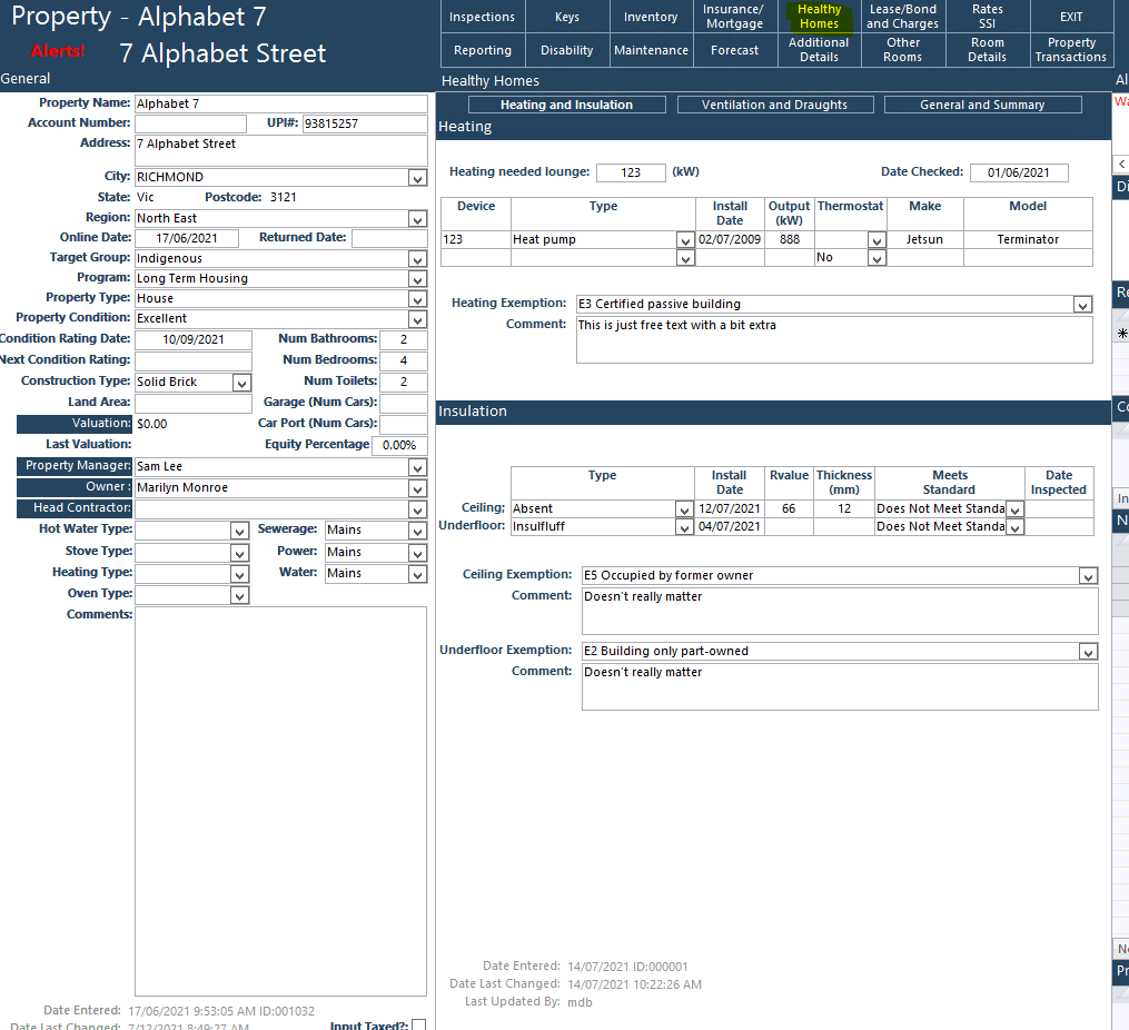 To add Healthy Homes data to your properties, double click on the property to be updated to display the property record